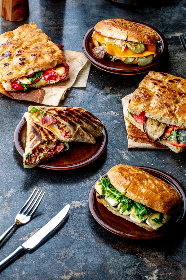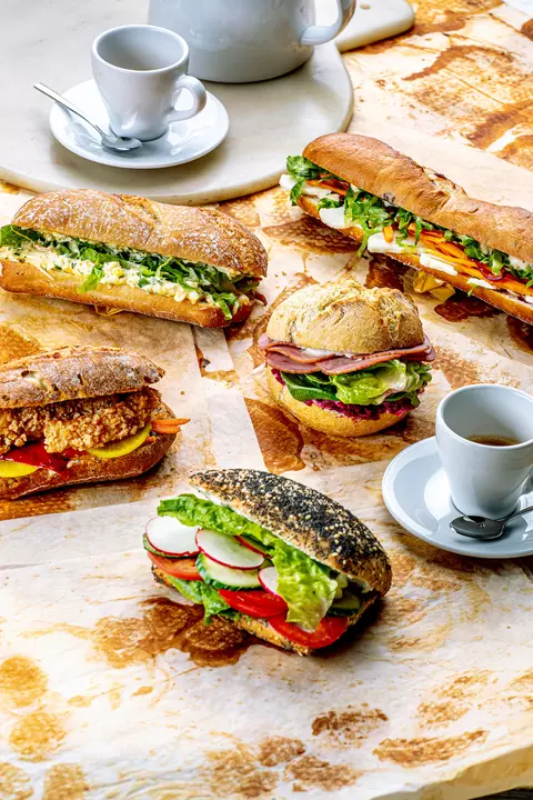 Wszystkie nasze kanapki, zapiekanki, pizze i sałatki przygotowujemy sami na miejscu, podobnie jak dodatki, takie jak konfitura cebulowa, wolno gotowana szarpana wołowina, pasta jajeczna czy hummus topinambur. Focaccia, ciabatta, bagietka, kajzerka - kanapki i zapiekanki komponujemy na bazie pieczywa, które o świcie wypiekamy dla ciebie na miejscu, dlatego są tak świeże i chrupiące o każdej porze dnia.